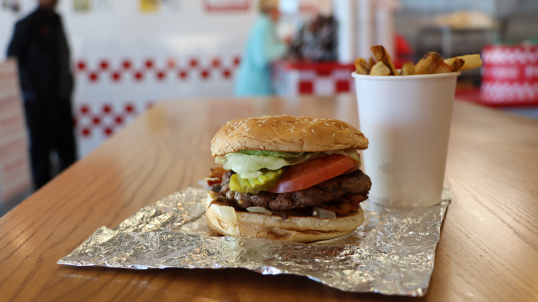A food safety award might not seem like the coolest accolade for a restaurant to receive, but they're certainly important, especially in the realm of fast food. That's why Five Guys Enterprises, the company behind the popular burger chain, is celebrating an honorable mention in the 2023 Excellence in Food Safety Awards, according to a press release. The award, presented by SteriTech and FastCasual, recognizes fast-casual restaurants that meet SteriTech's seven pillars of food safety excellence, which are senior leadership commitment and engagement, food safety communications, defined standards and procedures, training, key performance indicators and scorecards, oversight programs, and positive recognition.