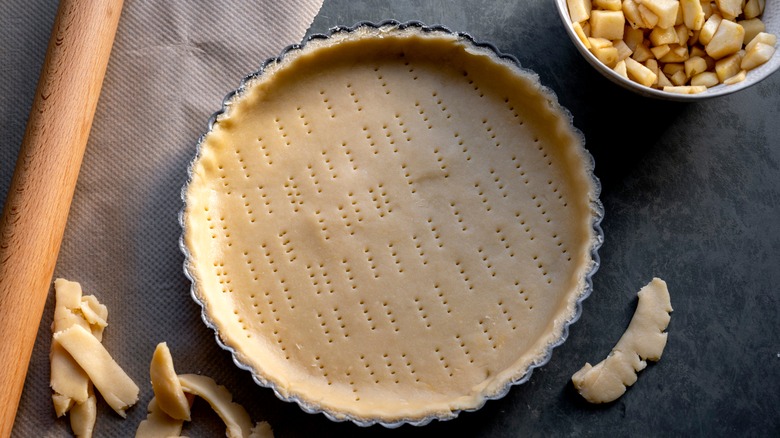 If your apple pie is coming out greasy rather than flaky, it's likely because all of the butter leaked from your pie crust. And assuming you got a good distribution of the fat in your crust, the likely culprit is the temperature of your butter. Once butter gets between 68 and 72 degrees Fahrenheit, it becomes soft and easily pliable — which is good for creating a crust that you can work with. But if you let your crust sit out at this temperature sweet spot for too long, the butter will become too soft. Likewise, if you get to the point where your butter is completely melted, you won't get any flaky layers when you bake it in the oven.