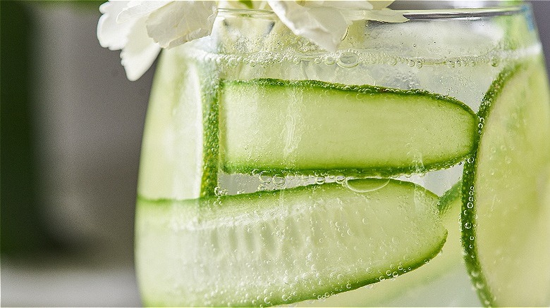 To avoid the cocktail being filled with tiny pieces of cucumber, muddle the cucumbers instead in a cocktail shaker with a muddler before adding the other ingredients. Muddling releases the flavorful liquid of the cucumber, infusing the gin and elderflower with its light flavor. This doesn't have to be difficult — muddle just enough to break the cucumbers down and release some liquid. Use simple syrup to help, if needed.