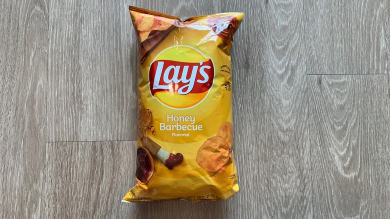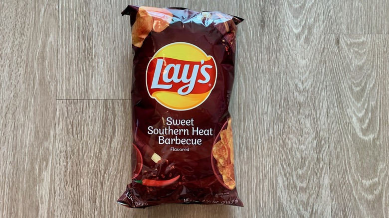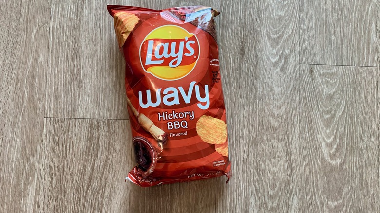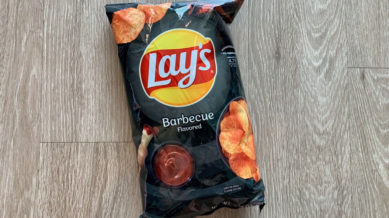 A lot of people don't really like Lay's Barbeque chips, but others think that there's absolutely nothing better to be found at a summer cookout. Sometimes a handful of barbecue chips really is even better than hamburgers and hotdogs. Barbecue is an underrated flavoring and — don't laugh — can deliver depth and nuance. It's creamy and savory and rich and sweet, but it's probably the sweetness that makes these potato chips a little bit polarizing.