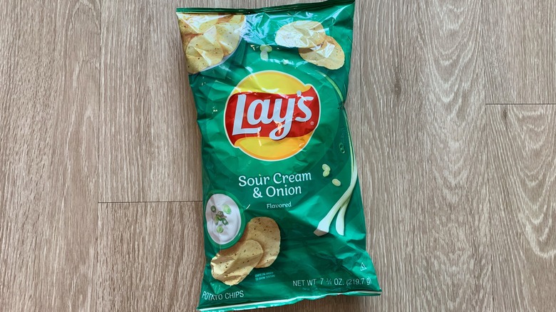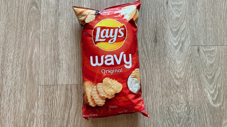 It's actually not as difficult as it sounds, at least from our end — via the dusting of dill, parsley, and chives, the ranch flavor comes through instantly. Those particular herbs all deliver a freshness that goes really well with potatoes in any form, be it chip, tot, or roast. There's even a touch of creaminess from hints of buttermilk powder to really nail the flavor. These are surprisingly good — a milder, wavier cousin to Lay's Sour Cream & Onion.