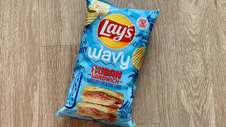 And we thought attempting to get a whole BLT into a chip was hard. Lay's has established itself as the king of spot-on flavors, but we were ready for the brand to meet its match in the Cuban sandwich. No number of waves could possibly encompass this laundry list of ingredients: ham, pickles, mustard, Swiss cheese, all on toasted bread ... or could they? Reader, they could, and they did. There's a tang we might attribute to mustard, a briny sourness we remember from the Dill Pickle chips, and a savory meaty flavor that we haven't found in any other Lay's chip.