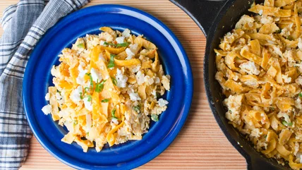 Do you have a container of leftovers sitting in your fridge and you don't feel inspired to eat it? Rather than ignoring it until it goes bad, clean out your fridge by adding it to your morning's scrambled eggs. These extra bits and bobs from your weekend takeout or last night's dinner are a great way to elevate a classic breakfast dish while also making great use of leftover veggies and meat.