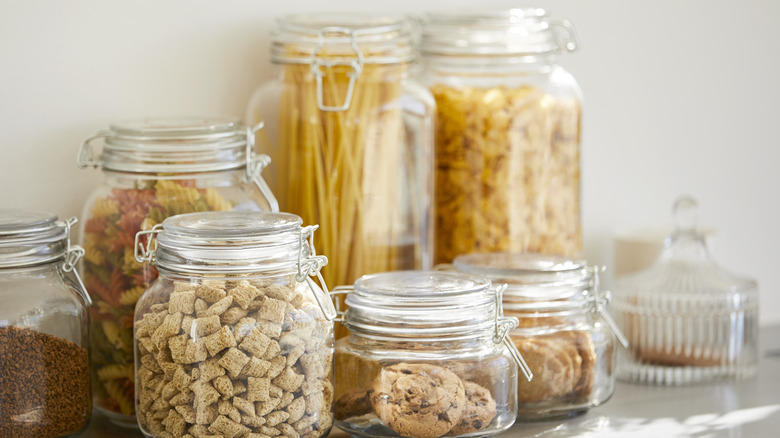 The Barefoot Contessa's pantry is nothing but impressive. In her video for The New York Times, the shelves of her pantry are filled with various ingredients she uses in her recipes, as well as some of her favorite snacks. One of the ways she keeps her pantry and kitchen space organized is by using glass jars. It's the kitchen storage solution Ina Garten loves because she can fill them up with almost anything and doesn't need a label maker to tell the difference between flour and sugar.