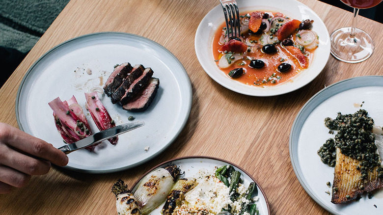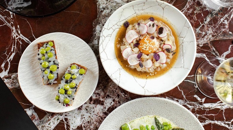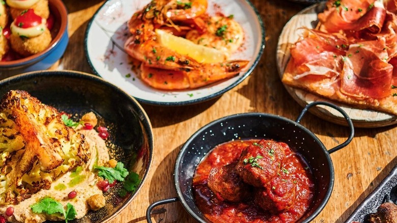 Small dishes are known as "tastets" and focus on the local produce of the area. Modernized and gorgeously presented, there's something for everyone — fried calamari with dramatic squid ink mayonnaise, bao buns filled with decadent wagyu brisket and traditional beef sauce, and roasted pepper croquettes are among the delights available here. The real standout, though, are the dishes cooked on charcoal. For example, there's Catalan-style rice, with its distinctive crispy crust and whole lamb leg accompanied by root vegetables.