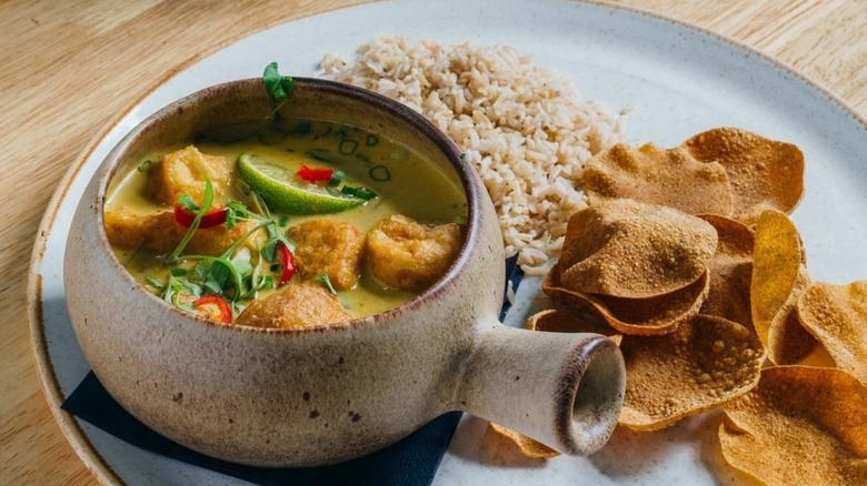 The menu, although small, is as delicious as it is varied, hopping between modern Asian cuisine, traditional British, and American comfort-food classics. Reviewers consistently laud the crispy cauliflower wings with spicy sriracha mayo. Other dishes worth trying are the best-selling jackfruit tacos with guacamole, described as spicy with a "smokey edge," and the tofu laksa with courgette noodles in a spicy lemongrass-flavored broth, delicious with crispy poppadoms.