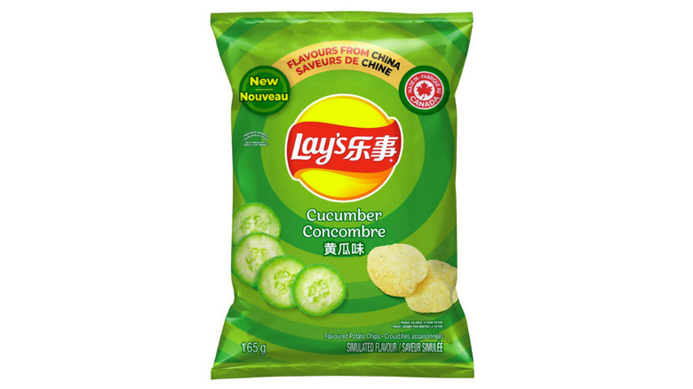 Normally, chips aren't typically associated with a refreshing taste. Yet that's precisely the experience this unique potato chip provides. Along with the satisfying salty crunch, you receive a refreshing undertone from the taste of crisp cucumbers. While pickle-flavored chips may be more familiar to Western chip consumers, these differ in that they offer a somewhat more refreshing kick than their briny-flavored counterparts. However, Lay's doesn't skimp on the flavoring here, drenching the chips with a generous cucumber coating. Consequently, if fresh cucumbers don't appeal to your palate, these chips might not either.
