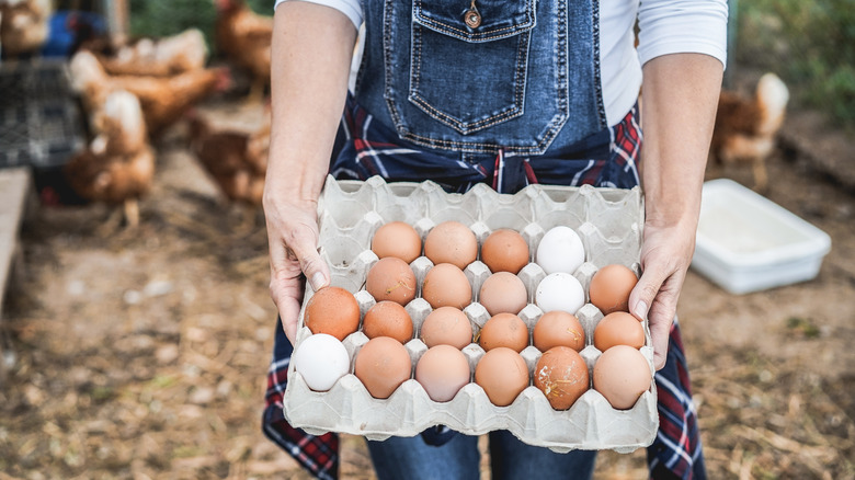 Plus, you're more likely to get a high-quality batch when buying from local vendors and farms. This can mean that your eggs are fresher and the hens are raised under more humane conditions — not to mention, you're supporting a local farm instead of a bigger corporation. And perhaps the biggest benefit of all? Because of all of that extra TLC, your eggs may even taste better than grocery store versions.