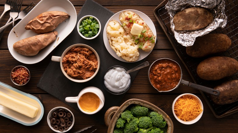 Whether you are chaperoning a sleepover for a bunch of teenagers or it's your night to host book club, creating an ultimate baked potato bar will please and satisfy the pickiest of eaters. No one knows this better than chef and food writer Alison Roman. The New York Times food columnist shared with Bon Appétit that, "One of life's greatest pleasures is a bar of any sort, but none is better than one that involves potatoes."