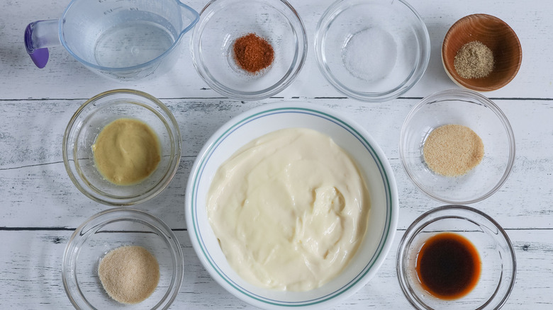 When you hear the words "barbecue sauce," it's likely that the first thing that springs to mind is a sweet and tangy tomato-based concoction. While that's often the case, especially in 49 out of 50 states, the situation might be different in Alabama, where mayonnaise-based barbecue sauce is a statewide favorite. As recipe developer Jessica Morone says of her take on this classic condiment, "This sauce is super easy to make; it's just one step." She adds, though, that simple Alabama barbecue sauce "will elevate everything you put it on."