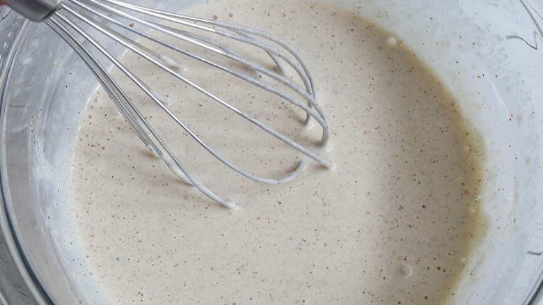 Once your sauce is done, taste it and see if it needs any tweaking. As Morone tells us, "You can absolutely change up the seasonings in this to change the flavor to your taste." Leave out the cayenne if you're spice-averse, add a splash of hot sauce if you're a fan of heat, or even elevate your Alabama white sauce with spices like nutmeg.