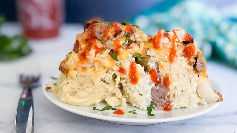 We've already established that hash browns are amazing, but they're even better with cheese. Enter this delicious hash brown and cheese breakfast casserole. The beauty of this recipe is that you can make it ahead of time and heat it up in the microwave after storing it in the fridge or freezer in individualized portions. This, of course, means you get to sleep in on hash brown casserole mornings.