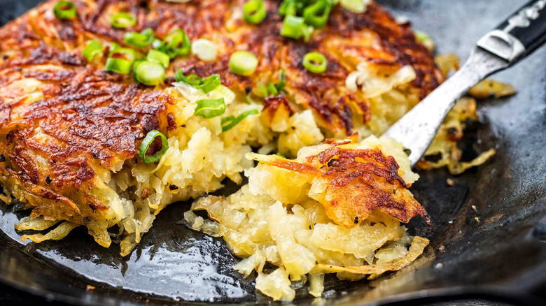 Unless you're content with just eating boxed cereal every day of your sad life, you probably already know all about the wonders of hash browns. This all-around favorite breakfast food is made of shredded potatoes that have been fried until browned and crispy, sometimes with onions and various spices. But if you've ever bit into a forkful of hash browns and found part of it to be a little cold and slimy, you'll know that evenly cooked hash browns are not all that easy to pull off. To avoid this sorry fate, we recommend following a few key steps.
