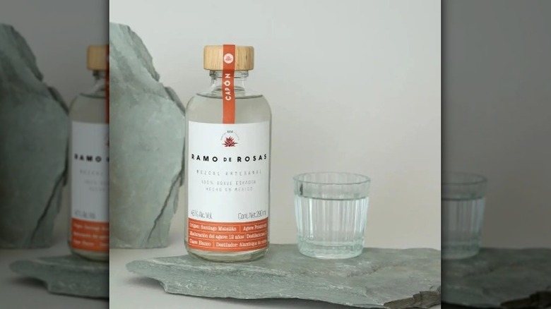Hernández and his team use espadín capón agave that has matured for eight years. When they are cooking the agave cores (or piñas), they throw in a bunch of roses that will burn alongside the agave plants as an offering to the Virgin of the Rosary, patron of Santiago Matatlán. This offering is not only meant to ensure the Virgin's blessing for good production, but it also infuses the liquid with a touch of mysticism and faith. Later, the cooked agave is ground with a traditional horse-pulled tahona stone and fermented in wooden barrels. Finally, the mezcal passes through a double distillation in copper stills. The result is a bright, creamy mezcal with notes of dried fruit and a touch of smoke on the nose, and sweet, herbal notes of citrus on the palate.
