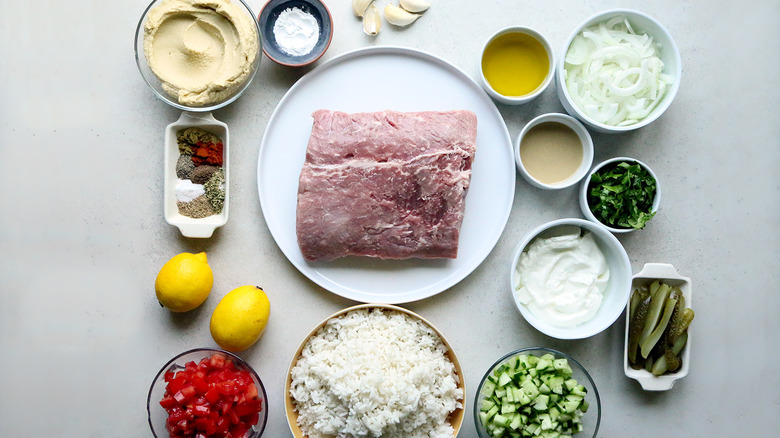 Gather the ingredients for Middle Eastern-spiced beef shawarma bowls