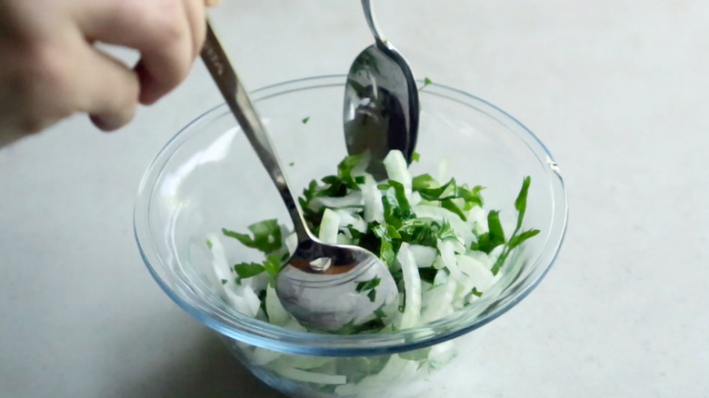 Make the onion parsley salad