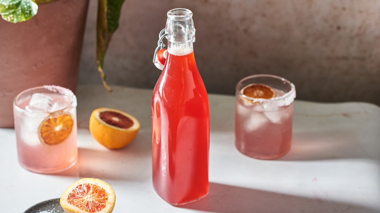 With this particular recipe, McGlinn is actually going in a slightly different direction from a standard sour mix by using blood oranges instead of lemons. With this simple swap, her sour mix can make for two-ingredient margaritas since all you'll need to add is tequila. No triple sec is required since the mix not only supplies the sweet and sour, but also both the lime and orange flavors. This recipe is "super versatile" since it can serve as a citrus-flavored simple syrup as well as a sour mix. McGlinn's advice is to try it in a Moscow Mule or gin and tonic if you prefer these cocktails made with added sweetener. Non-drinkers can enjoy this sour mix too, using it in mocktails or adding a few tablespoons to a glass of seltzer to make a citrus-flavored soda.
