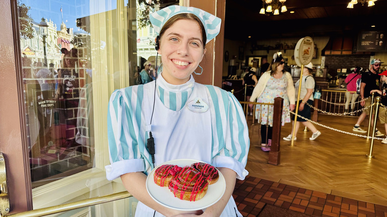 Rounding off the Starbucks locations located in the middle of the theme parks is the Main Street Bakery right on Main Street at the Magic Kingdom. You'll know you've made it when you spot the cast number holding the giant Mickey-shaped cinnamon roll in front of the door (one of the best Mickey-shaped snacks available). Perhaps unsurprisingly, this is the location that gets the most attention, so the line tends to be extensive. There are some slower points throughout the day, but you can almost always expect at least some of a wait at the Main Street Bakery.