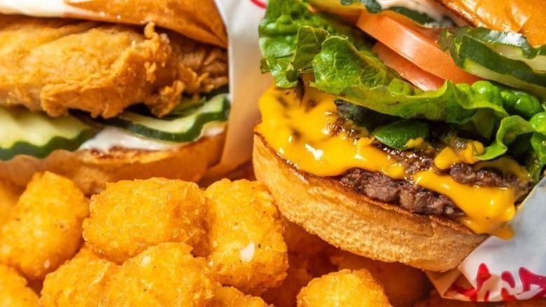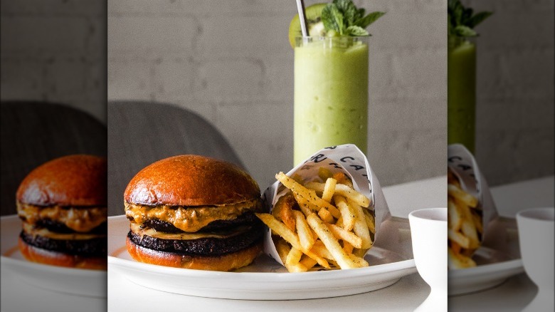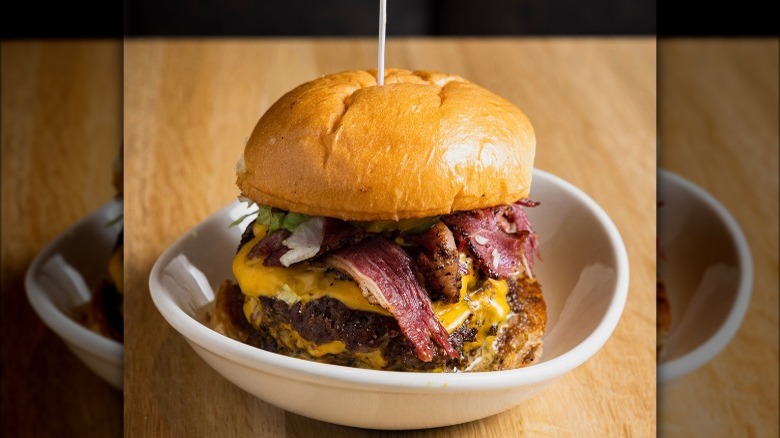 As the film "The Menu" proved, there's nothing quite as satisfying as a juicy and nostalgic burger. The classic combination of meat, cheese, and veggies squeezed between two pillowy buns is virtually foolproof — from crispy smash burgers to thick BBQ burgers, the possibilities are endless. Thanks to the rise in popularity of plant-based meat alternatives, even vegans and vegetarians are able to cure their craving for an all (sort of) American burger.