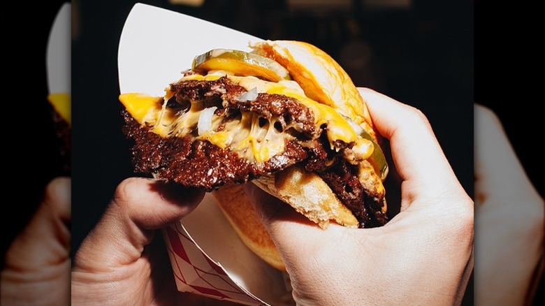 Heavy Handed LA has made major waves since landing in Santa Monica. The short rib patties have a more tender texture than standard ground beef patties, plus a rich and fatty flavor to match. Since these burgers are on the heartier side, a double is ideal since you'll want more than a single — but a triple might be slightly overwhelming. These memorable smash burgers are coated in Heavy Handed signature sauce. If you get a combo, they come with fries and a drink.