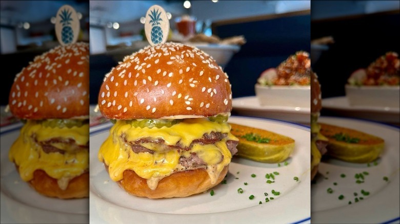 Connie & Ted's may be known for being one of the best seafood restaurants in Los Angeles, but you'll definitely get hooked on the Hook Burger. This thick and juicy cheeseburger is made with Hook's sharp and bold four-year-old cheddar cheese. Other toppings include pickles, fresh onion, lettuce, and a creamy 1,000-island dressing. The burger is $17, at the time of publication, but you can also add some Neuske's bacon for an additional fee.