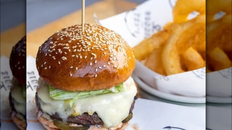 If you're dining with a plant-based friend, Burger She Wrote also serves vegan-friendly burgers made with Impossible Meat. The hand-cut fries are also a must, but if you want to pair your burger with some greens, order the delicate yet flavor-forward vegan Caesar. The fried pickles are also a stellar side, especially for those that enjoy a zesty kick.