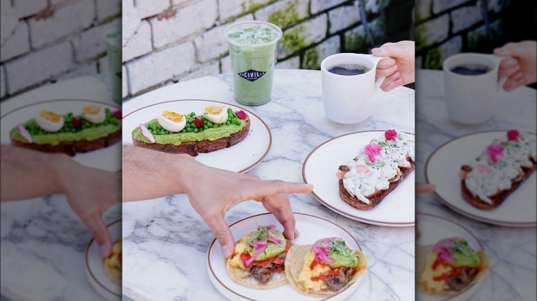 Don't be surprised if the baristas try to engage in conversation — that's sort of the brand. The butterfly latte is an Instagram favorite thanks to its vibrant coloring and use of blue butterfly pea flower. If you like sweeter coffees, there are plenty of great options on the menu. The zesty and slightly spicy "queen" avocado toast is also a great grab for breakfast.