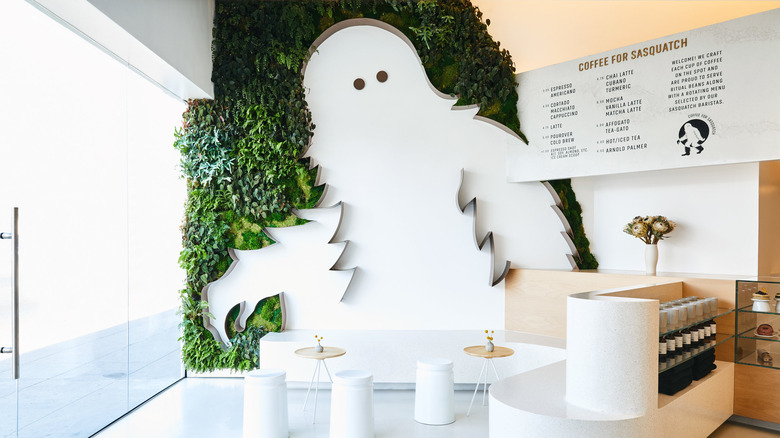 Between the funky architecture and bright and airy interior, Coffee for Sasquatch is a design enthusiast's dream. The modern coffee shop is situated right in the heart of Melrose Avenue in the Melrose Arts District, and you'll always find an array of locals and visitors popping in for a shot of espresso. Upon walking in, the first thing to greet guests is a wall of greenery that creates the outline of a sasquatch. The curved white booths are contemporary while still being inviting, and the shop can easily be used for working or hanging.