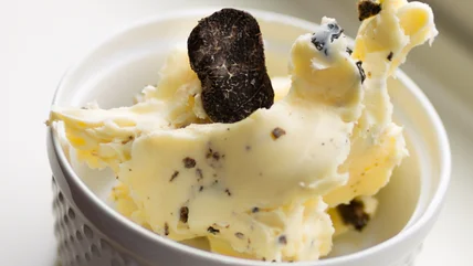 As opposed to nearly all truffle oils, which don't actually contain real truffles, Wegmans truffle butter is packed with the real deal. It contains black truffle paste, which infuses every bit of the butter with the oaky and distinctive nutty flavor of the delectable fungus.