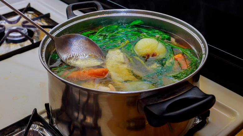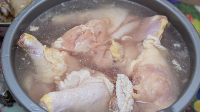 Water is essential for cooking in many ways beyond just boiling vegetables or making soups and stews. One of the most useful applications of water in cooking is using it to help tenderize and soften meat. As meat cooks, the heat causes the proteins in the meat to tighten and squeeze out moisture (per The Culinary Pro). When the meat is exposed to moisture as it cooks, such as basting it in its own juices or adding extra water, it helps the meat retain more moisture and stay softer.