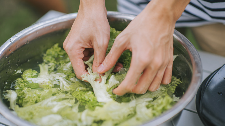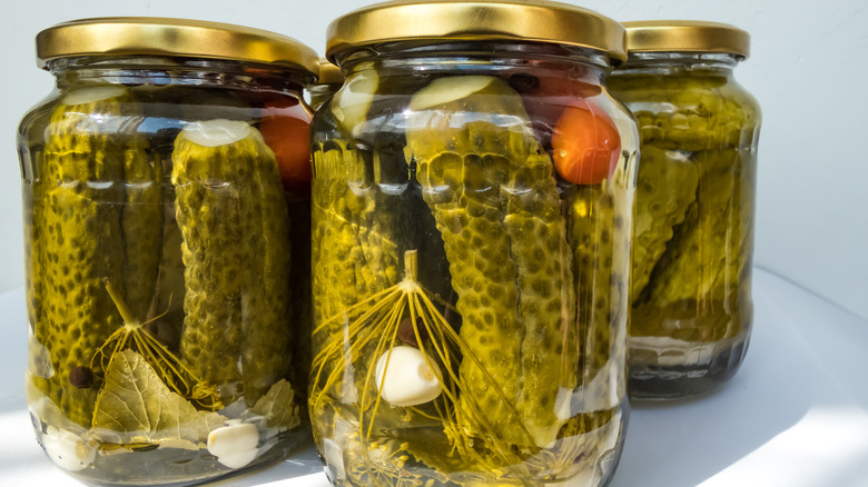 But the role of water in a pickling brine doesn't stop at simply being a mixer. The water in the brine also helps the pickles retain their crispness. When vegetables are soaked in the brine, the water in the vegetables is pulled out and replaced by the brine through osmosis, which helps maintain their firm texture (via Serious Eats).