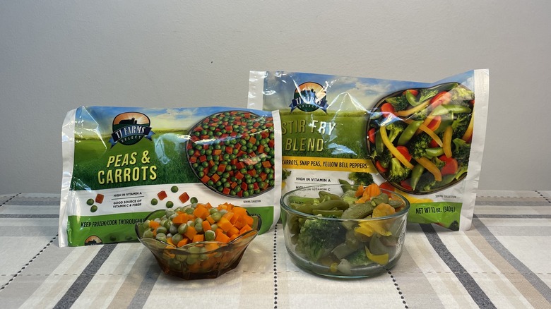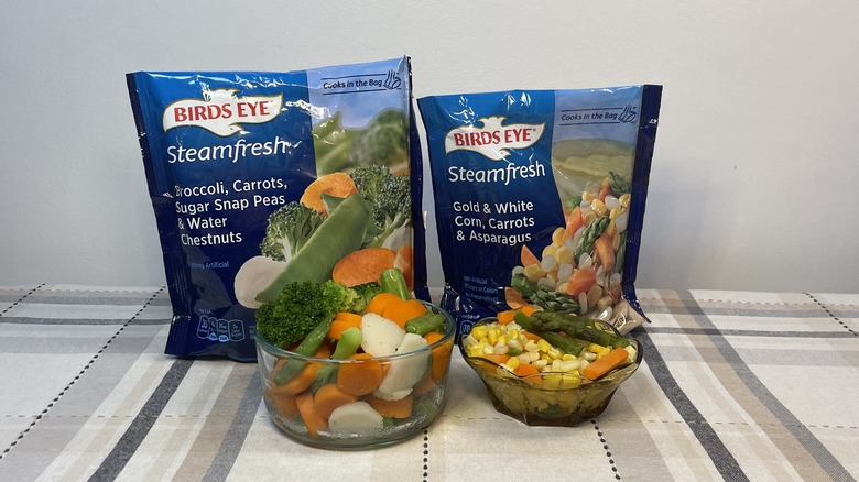 Bird's Eye is surely one of the most recognizable brands in your grocer's freezer section, founded at the turn of the century by Clarence Birdseye. Like other frozen vegetable purveyors, Bird's Eye has broadened its line to include seasoned vegetables, recipe starter kits, and more. We chose a corn, asparagus, and carrot medley alongside their stir-fry mix to put the brand to the test.