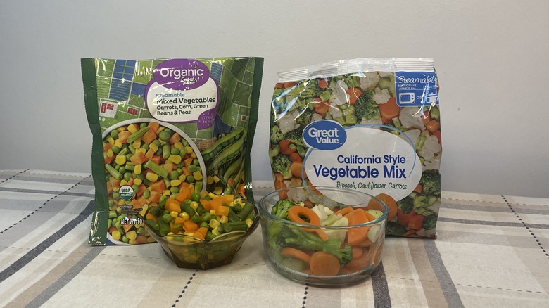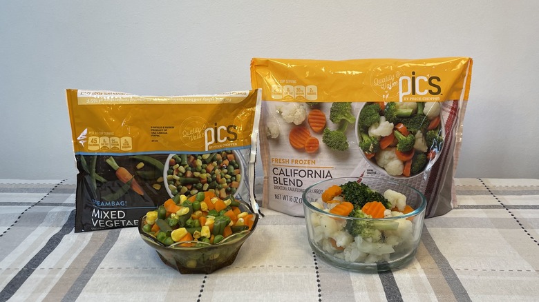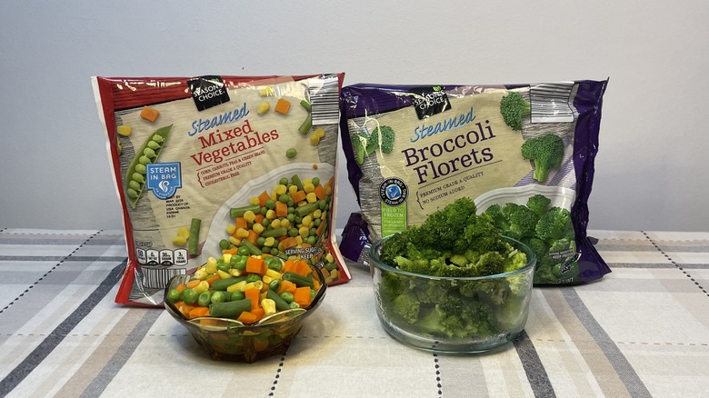 Aldi is something of an enigma in the grocery store world — it's a well-known fact that there are many incredible items on the store's shelves, but popular Aldi products can be difficult to find due to seasonality, limited editions, and low stock. While we loved the low price of Season's Choice, Aldi's generic line of frozen vegetables, we weren't thrilled with the store's limited selection in the freezer section. To test the quality of Aldi's frozen vegetables, we opted for classic broccoli florets and a mixed vegetable medley.