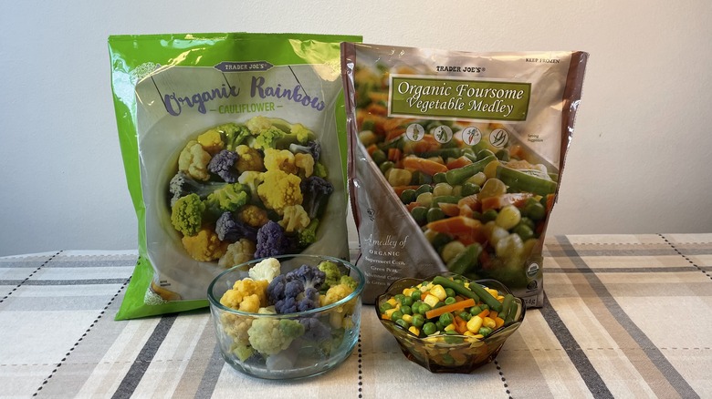 Like Aldi, Trader Joe's has something of a cult following with many grocery store shoppers. When we examined the selection of frozen veggies, it was clear to see why. The chain offers plenty of eclectic options at reasonable prices — we picked up its Foursome Vegetable Medley and Organic Rainbow Cauliflower for just under two and three dollars, respectively.