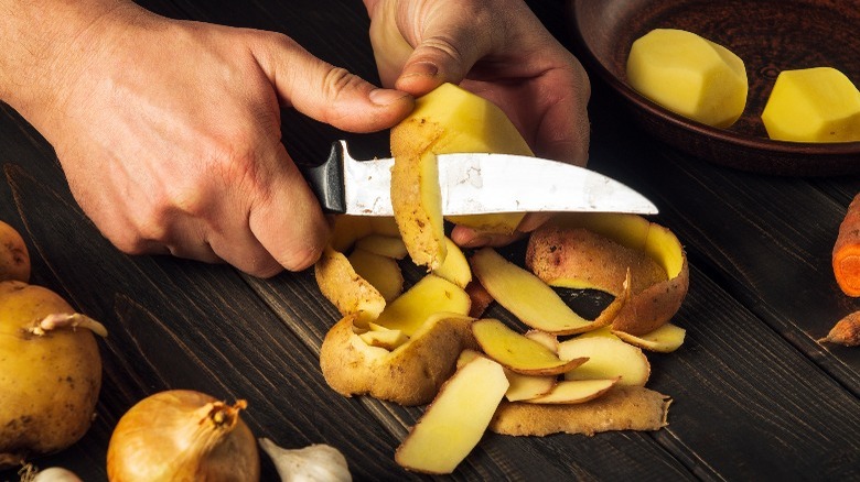When it's time to whip up a big batch of buttery mashed potatoes, we routinely run to our utensils drawer, grab a vegetable peeler, and move on to the potato sack. Like many other mundane kitchen tasks, peeling potatoes can become mindless. But what if we told you you've been peeling potatoes wrong your entire life? What if we told you peeling potatoes can be much simpler and, dare we say, exciting? While digging potatoes out of the garden and enjoying them alongside a big juicy steak deserves all the glory, peeling your potatoes can get a little recognition too.