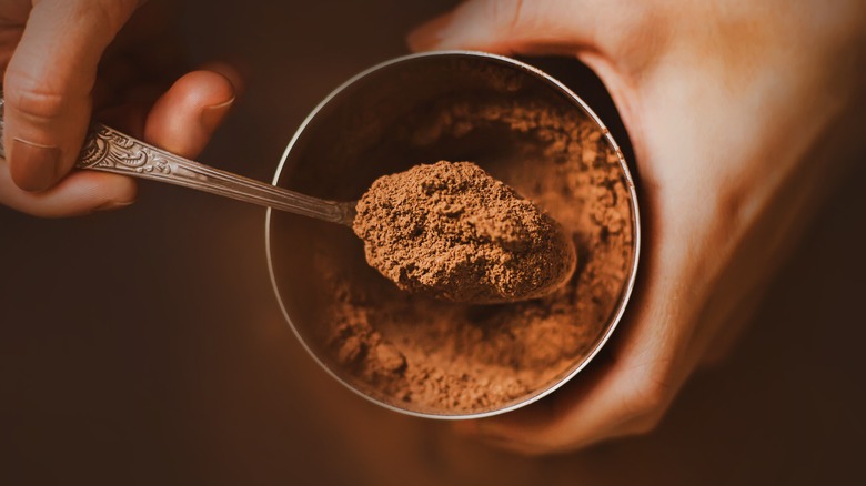 Cocoa powder not only provides flavor, color, and acidity, but also has higher water absorption and adds bulk, which decreases the amount of flour you need. The only catch is choosing the right type of cocoa powder — some varieties have undergone what's called the Dutch process, which alkalinizes and reduces acidity. If you're looking for more zing though, make sure to use natural cocoa. Vegan or not, baking just wouldn't be the same without this chocolatey delight.