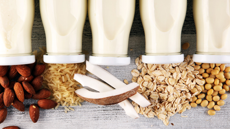 As with alternative sweeteners, there's a wide selection of dairy-free milk substitutes to choose from. From oat and almond to soy, rice, flaxseed, and everything in between, it really depends on your personal preference and what the recipe requires. Some varieties, like coconut and macadamia, carry a more pronounced taste, while others like soy and rice can blend seamlessly into the mix.