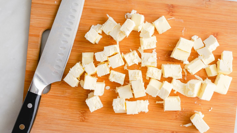 As per its name, beurre blanc starts with butter. And to create such a decadent texture, it requires a fair amount of it — up to two sticks per cup of the sauce. Incorporating cold butter gradually is critical, or else the sauce will break, so it's best to cut it into cubes before starting.