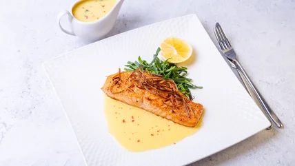 Take beurre blanc, for example. It's comprised of an emulsified butter base, so it'd be easy to mistake it for hollandaise. However, the inclusion of shallots and white wine gives it a savory and slightly tangy feel that makes it a delicious accompaniment to seafood, especially white-fleshed fish.