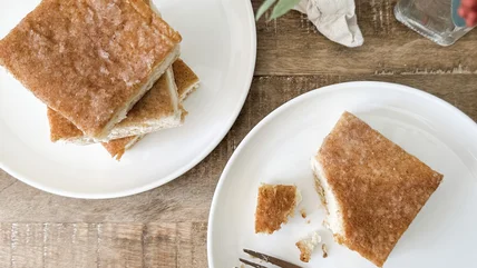 - Mix to combine the remaining ¼ cup sugar with cinnamon and sprinkle it evenly over the sheet.