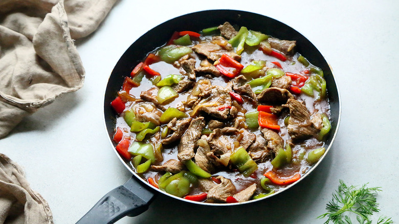 Making dinner every night can quickly become a repetitive task, which is why we like to try new dishes for variety. Still, we're not really ready to follow a long process to get food on the table at the end of the day. Thanks to Tasting Table recipe developer Ashley Altan's spicy Chinese pepper steak recipe, dinner is an easy task that will satisfy your hunger and desire for fun flavors. "The rich spicy sauce coats the rice, making each bite saucy with juicy meat bits," Altan describes.