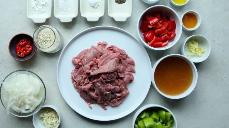 For this recipe, you'll need baking soda and flank steak (thinly sliced against the grain) to start. Next get some soy sauce, beef broth, sesame oil, ginger (finely chopped), garlic cloves (finely chopped), sugar, and cornstarch for the sauce. "Cornstarch's magic resides in its capacity to swell and lock up its starch cells when heated, resulting in a thicker consistency," Altan explains. In her opinion, "the thick and glossy soy sauce with infused ginger and garlic is what makes this Chinese pepper steak so delightful."