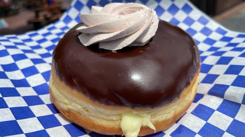 When my family and I moved to Central Florida, we had no idea of the donut sanctuary that awaited us. With boutique donut shops everywhere and massive yeast rings sold at theme parks, we have many outstanding options. Our favorite spot, however, is DG Doughnuts in Ocoee — and that's largely due to its version of the classic Boston cream donut. Aptly named "Better than Boston Cream," this delightfully moist oval donut is filled with some of the most creamy and delicious filling you can imagine. Then, it gets dipped in some warm chocolate ganache with a little extra chocolate topper.
