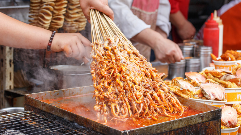 Dragon Fest, whose visitors will include "gastronomic enthusiasts, art lovers, and the culturally curious," will feature, according to a release sent to Tasting Table, "over 100 varieties of traditional, popular, and rare Chinese foods." These include xiaolongbao, AKA soup dumplings, spicy dan dan noodles, the iconic red, candied hawthorn sticks, fermented stinky tofu, and steamed bowl pudding cake, to name just a few. There will also be "Han-style clothing and Miao embroidery and jewelry on display."