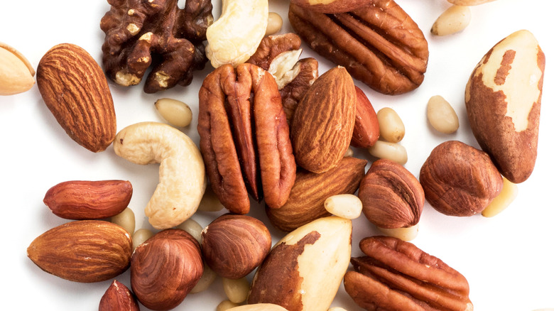 That said, adding flavorings afterward may even be recommended depending on the recipe. For example, when dressing nuts with tender herbs like basil, tarragon, or dill, the roasting process will only lead to discoloration, burning, and bitterness of the leaves. Instead, it's best to toss nuts with delicate herbs once nuts are already roasted to maintain a fresher flavor profile. Similarly, ingredients more susceptible to melting (especially when they're not meant to!), like semi-hard cheeses or brown sugar, can benefit from being added to nuts after roasting.