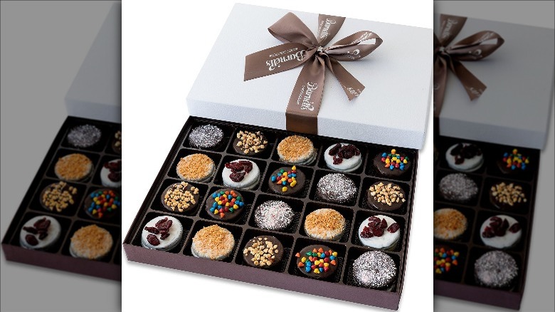 While we adore scrumptious and uniquely crafted cookies, if you're seeking something a bit more familiar, look no further than the chocolate-dipped Oreos from Barnett's. This collection of delectable cookies features a variety of delicious toppings, adding extra flavor and intrigue to each sweet bite. While it may not be the sole gift you plan to give your dad this year, it's an excellent way to kickstart the celebration. Furthermore, despite the availability of distinct flavors, each box contains a generous quantity of at least four cookies per kind. So, if your dad happens to fall in love with a particular flavor, there are plenty more to indulge in.