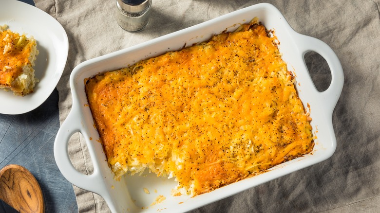 It's difficult to make potatoes too flavorful, so start with the under-seasoning part. Potatoes not only absorb whatever herbs and spices you throw at them, they tend to be the perfect foil for your preferred blend of herbs and spices. In addition to being overly cautious in this regard, many hash brown casserole recipes call for unnecessary salting, making the dish nearly inedible. These quick tips will remedy those errors and really bring this casserole to life.