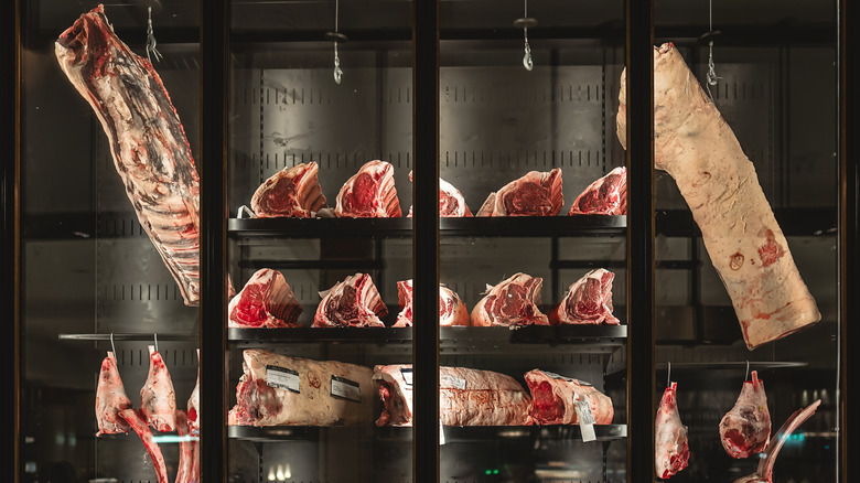 There are few things as emblematic of summer as the smoke and sizzle of burgers on the grill — and few recipes as unique to the individual chef as the ingredients that go into their humble burger. If you've mastered the basics and are looking to create your own signature hamburger, it's time to go beyond choosing the right ground beef and consider making burgers with a combination of different cuts of ground beef that have been dry-aged. The robustness of sirloin, juiciness of brisket, and beefiness of short rib will still be there, but with their flavors sublimely more refined and dense.