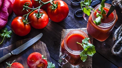 School is out for summer, which means our favorite, tomato season, is in full swing. Something about a ripe, juicy tomato adds just the right touch of freshness to a backyard barbecue that we love. But how do you enjoy that bright, sweet flavor after the weather starts to cool? One easy answer is tried-and-true tomato juice — not the sugary, bottled stuff, but the classic canned variety.
