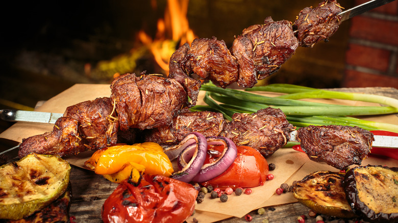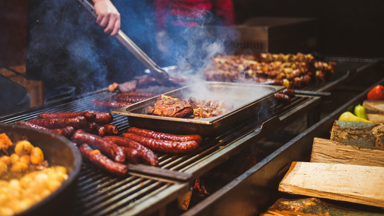 As chef Wise puts it, wood is basically just "charcoal in its raw state," so it requires more attention and decision-making when used for grilling. Wood needs to be moved around for airflow, and you often need multiple types of flammable items like tinder and kindling to get your fire going right. That is all a lot of work, but charcoal just can't compare to the varieties of flavor you can get out of wood. You can even pick which types suit your meal — use more delicate wood like alder or maple for seafood, or more robust mesquite and hickory for beef and pork. Wise likes to use American Red Oak on the vegetables he grills, because of its sweetness and mild taste. If those differences matter to you, or if you're cooking something more delicate that might be overpowered by charcoal, wood's extra effort might be worth it. If not, you can stick with the relative ease of charcoal.